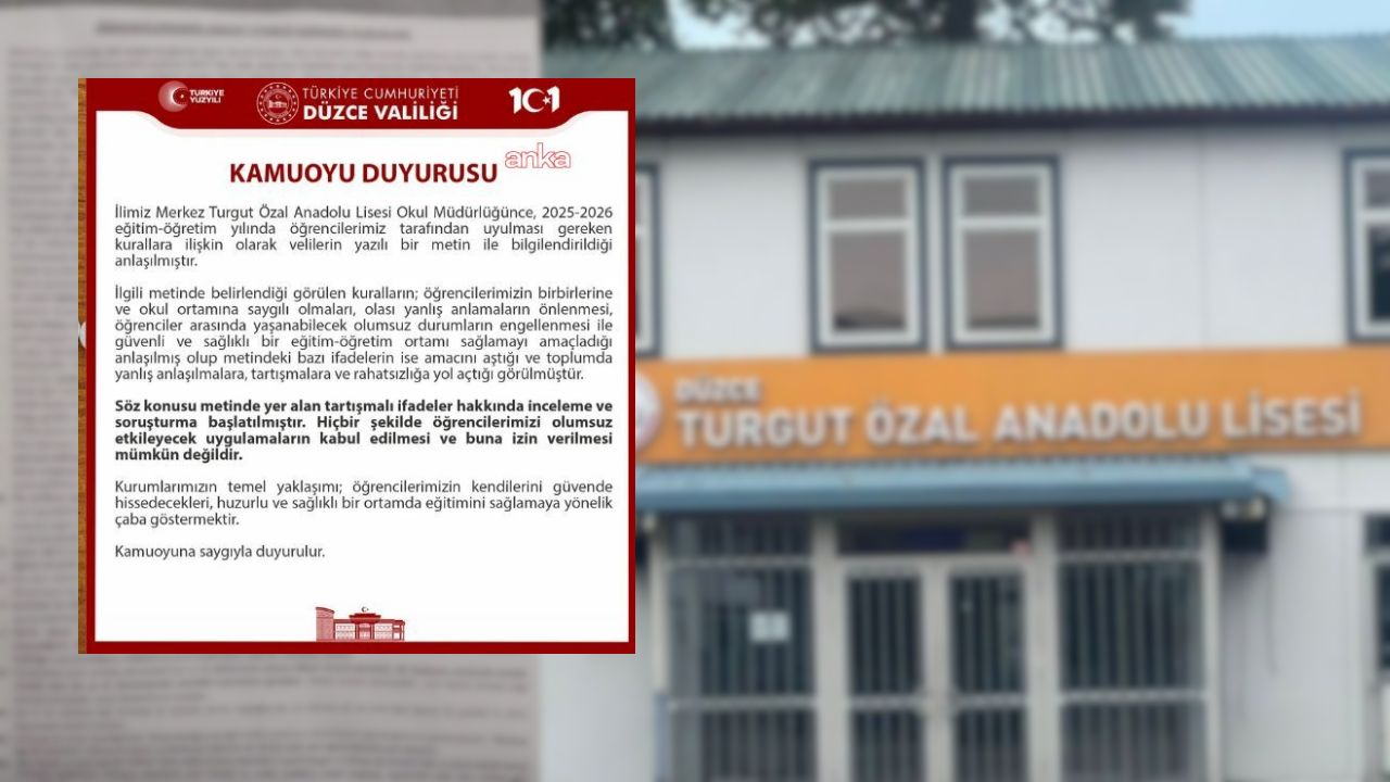 DMHA DÜZCE-Kamuoyuna yansıyan listenin ardından Düzce Valiliği yazılı açıklama yaptı. Valilik açıklamasında, 2025-2026 eğitim-öğretim yılı öncesinde velilere dağıtıldığı belirtilen metnin öğrencilerin birbirlerine saygılı olmalarını sağlamak amacıyla hazırlandığının anlaşıldığı ancak bazı ifadelerin amacını aşarak yanlış anlaşılmalara, tartışmalara ve rahatsızlığa neden olduğu ifade edildi. Açıklamada şu ifadelere yer verildi: “İlgili metinde belirlendiği görülen kuralların; öğrencilerimizin birbirlerine ve okul ortamına saygılı olmaları, olası yanlış anlamaların önlenmesi, öğrenciler arasında yaşanabilecek olumsuz durumların engellenmesi ile güvenli ve sağlıklı bir eğitim-öğretim ortamı sağlamayı amaçladığı anlaşılmış olup metindeki bazı ifadelerin ise amacını aştığı ve toplumda yanlış anlaşılmalara, tartışmalara ve rahatsızlığa yol açtığı görülmüştür. Söz konusu metinde yer alan tartışmalı ifadeler hakkında inceleme ve soruşturma başlatılmıştır. Hiçbir şekilde öğrencilerimizi olumsuz etkileyecek uygulamaların kabul edilmesi ve buna izin verilmesi mümkün değildir. Kurumlarımızın temel yaklaşımı; öğrencilerimizin kendilerini güvende hissedecekleri, huzurlu ve sağlıklı bir ortamda eğitimini sağlamaya yönelik çaba göstermektir.”