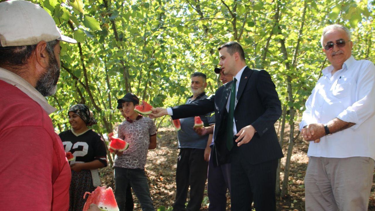 Çilimli Kaymakamı Furkan Alpay, ilçede bir vatandaşın fındık tarlasında çalışan mevsimlik tarım işçileriyle bir araya gelerek sohbet etti.