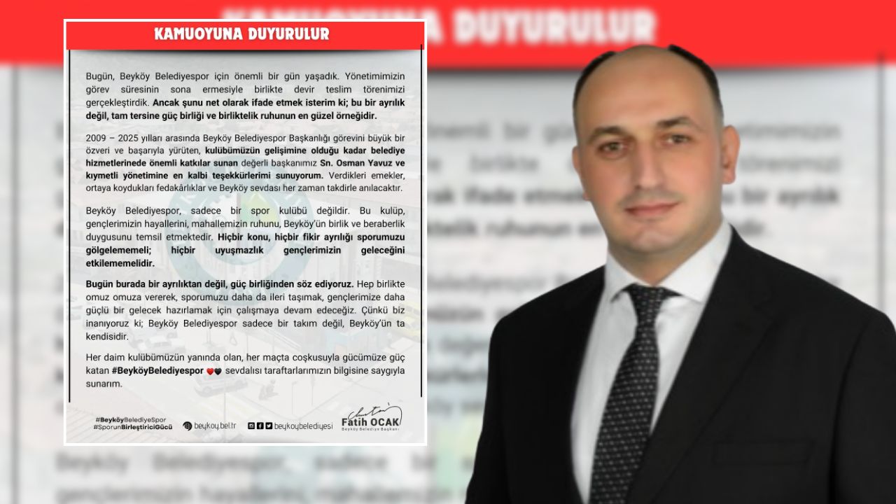 2009-2025 yılları arasında Beyköy Belediyespor Başkanlığı görevini yürüten Osman Yavuz ve yönetimine teşekkür eden Başkan Ocak, şu ifadeleri kullandı:
