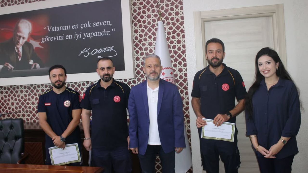 DMHA DÜZCE-Olayın ardından, personel Kenan Alemdar, İl Ambulans Servisi Başhekimi Dr. Ayşenaz Özcan ve görevde olan 112 ekibi, İl Sağlık Müdürü Dr. Yasin Yılmaz’ı ziyaret etti. Ziyarette Dr. Yılmaz, ekip üyelerine teşekkür belgesi takdim ederek, “Kenan ve 112 ekibimiz, mesleklerine ve insanlığa olan bağlılıklarıyla hepimize örnek oldular. Böyle duyarlı sağlık çalışanlarımız olduğu sürece, toplumumuzun iyilik ve dayanışma ruhu daima güçlü kalacaktır. Hepinizi yürekten tebrik ediyorum” ifadelerini kullandı. Düzce İl Sağlık Müdürlüğü, ekiplerin gösterdiği bu özveriyi takdir ederek, toplum sağlığına verdikleri katkının önemine dikkat çekti.